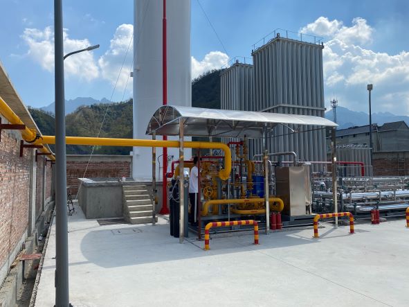 由于企業所在地臨安區島石鎮仁里村未覆蓋城鎮燃氣管網,為了滿足生產需求,廠區建有液化天然氣供氣站(下簡稱“氣化站”),為燃氣鍋爐、熱風爐等用氣設備點供天然氣,屬于工貿企業配套設施。