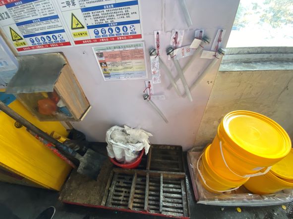 浙江宏竹塑膠五金有限公司成立于2006年10月30日,注冊資本為830萬美元,法定代表人為蔡俊宏,統一社會信用代碼91330421790951264B,公司地址為浙江省嘉興市嘉善縣惠民街道武夷路18號,經營范圍包括生產銷售:塑料板、管、型材,塑料包裝箱及容器,塑料零件,日用塑料雜品,塑料成型模具,體育器材配件,濾水泵、抽水泵、電動空氣泵,電動機,變壓器、手電筒等;貨運:普通貨運。 浙江宏竹塑膠五金有限公司生產過程中涉及的危險化學品主要分溶劑類、膠粘劑類和液體噴劑類。溶劑類危險化學品分別為油墨、天那水、乙醇、抹字水、洗網水、稀釋劑、PP水,主要使用于產品裝配時表面擦拭、印刷產品、網版擦拭及油墨稀釋。膠粘劑類危險化學品分別為MEK膠水、萬能膠、AB膠,主要使用于產品裝配時的塑膠軟管粘接、塑膠硬管粘接及金屬管與塑膠管粘接。液體噴劑類危險化學品分別為脫模劑、防銹劑、清洗劑、防卡耐磨劑,主要使用于模具保養、機械保養。危險化學品儲存場所為二號車間西北角的危險化學品中間倉庫。