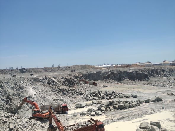 舟山市岱山縣大小魚山促淤圍涂工程是舟山(魚山)綠色石化園區(qū)建設(shè)項(xiàng)目的前期工程之一,工程將形成555公頃建設(shè)用地,故設(shè)置舟山市岱山縣大小魚山促淤圍涂工程(一期)岱山縣高亭鎮(zhèn)漁山村大、小魚山島建筑用石料(凝灰?guī)r)礦,該礦山為工程性礦山,開(kāi)采的石料部分用于海堤和成陸工程的填方料,部分加工為各級(jí)碎石用于石化基地建設(shè)。舟山市岱山北部促淤圍涂投資有限公司于2015年6月24日取得了采礦許可證(證號(hào):C3309212015067120138721),有效期至2018年6月24日。2016年1月26日礦山采礦權(quán)人變更為舟山石化園區(qū)投資發(fā)展有限公司。礦山于2016年6月通過(guò)安全設(shè)施竣工驗(yàn)收投入正常開(kāi)采。通過(guò)礦山開(kāi)采及圍涂形成的土地分階段移交浙江石油化工有限公司,由浙江石油化工有限公司開(kāi)展綠色石化基地建設(shè)。礦山2022年6月委托本公司進(jìn)行安全現(xiàn)狀評(píng)價(jià),并取得安全生產(chǎn)許可證。