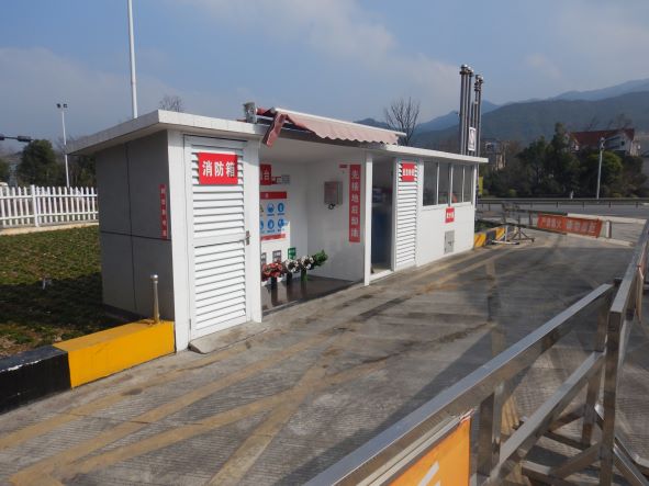 站區(qū)加油罩棚下設(shè)5座加油島(加油島上設(shè)置2臺三油品六槍和2臺雙油品四槍潛油泵式稅控加油機和1臺尿素液加注機)。埋地油罐區(qū)設(shè)5只30m³埋地SF內(nèi)鋼外玻璃纖維增強塑料雙層油罐和1只尿素液儲罐(非車道罐),其中4只30m³的SF雙層復(fù)合汽油罐(分別為2只92#汽油罐,1只95#汽油罐和1只98#汽油罐),1只30m³的SF雙層復(fù)合柴油罐(儲存0#柴油),折算后油罐總?cè)莘e135m³(柴油罐容積折半計入),根據(jù)《汽車加油加氣加氫站技術(shù)標準》GB50156-2021規(guī)定的等級劃分,該加油站為二級加油站。